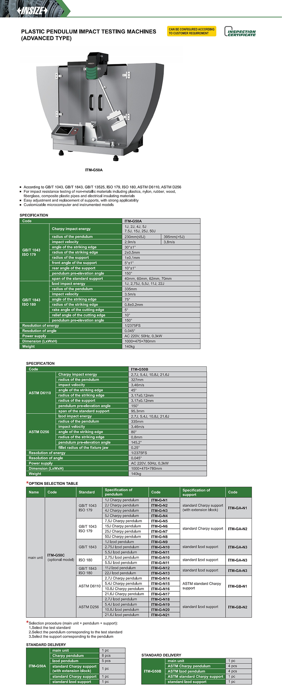 ITM-G50A GB/T 1043 ISO 179, GB/T 1843 ISO 180