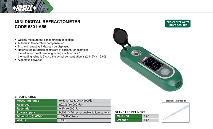 | 5801-A55 | refractometer | off-line | water based coolant | digital |