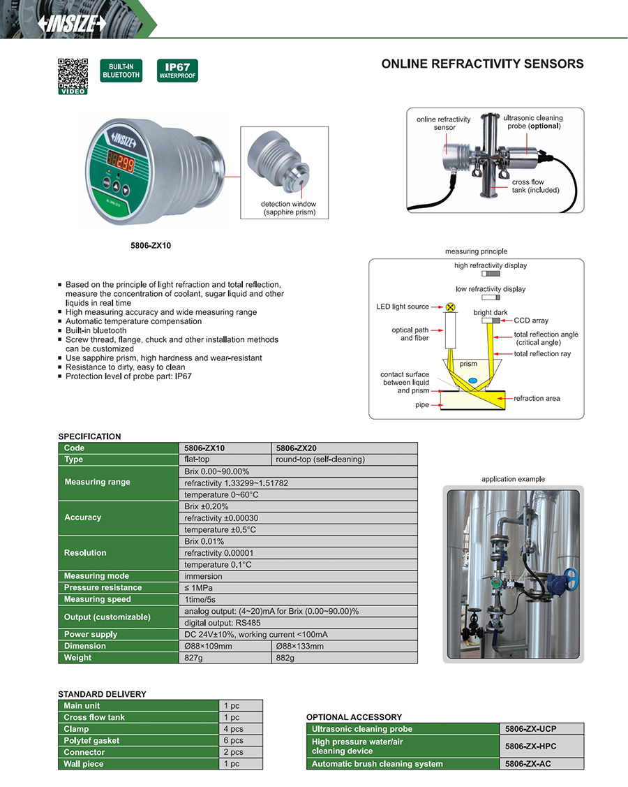 5806-ZX10 refractometer on-line water based coolant, sugar, juice scale