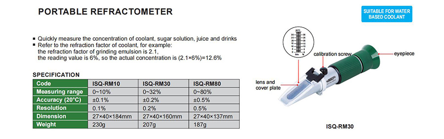 ISQ-RM10 refractometer off-line water based coolant, sugar, juice scale