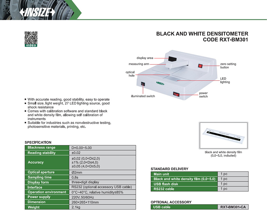 RXT-BM301 Blackness range: D=0.00~5.00 Reading stability: ±0.02
