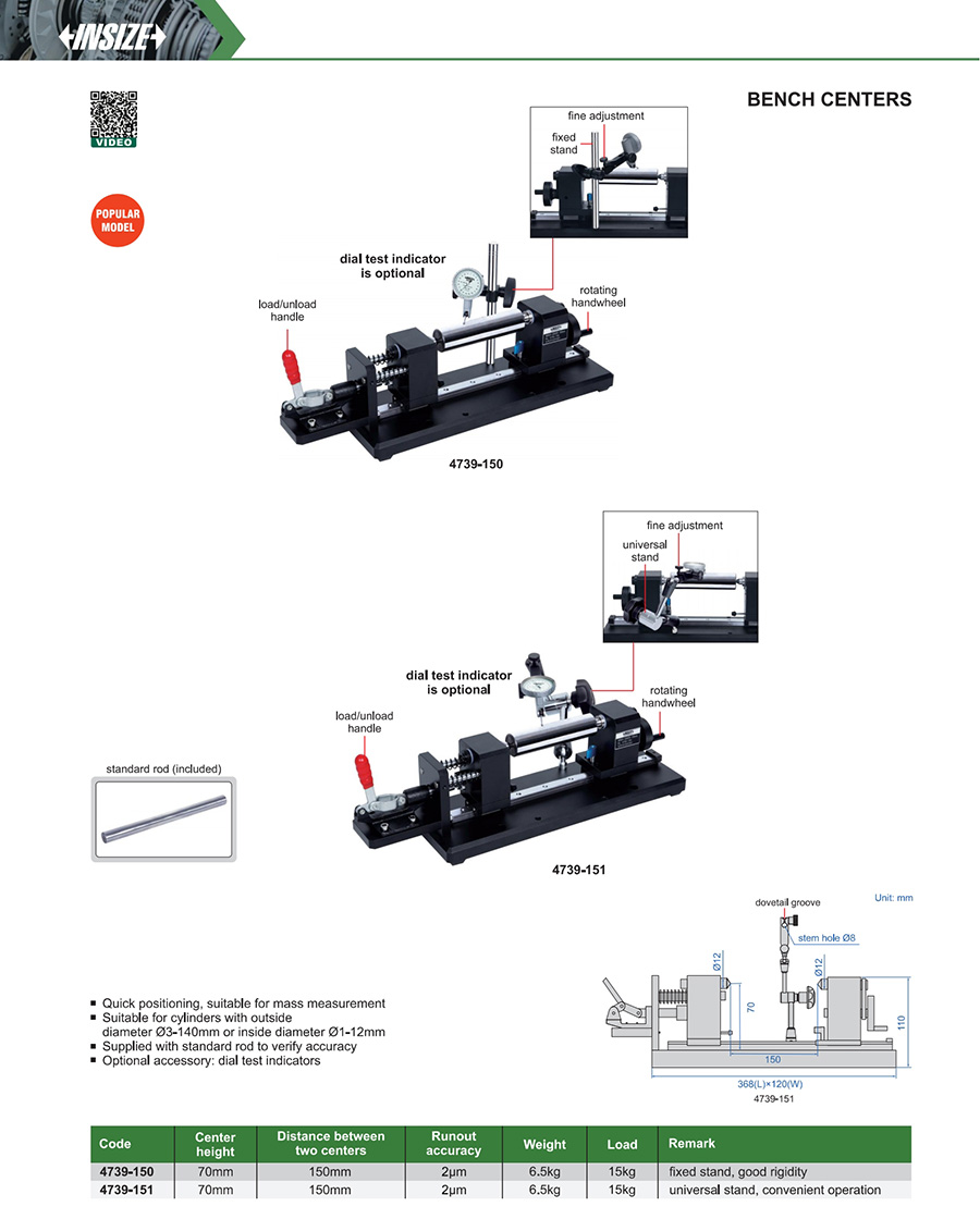 Home / Dimensional Metrology / Measuring Tools / Concentricity And Runout Tester / Bench Centers