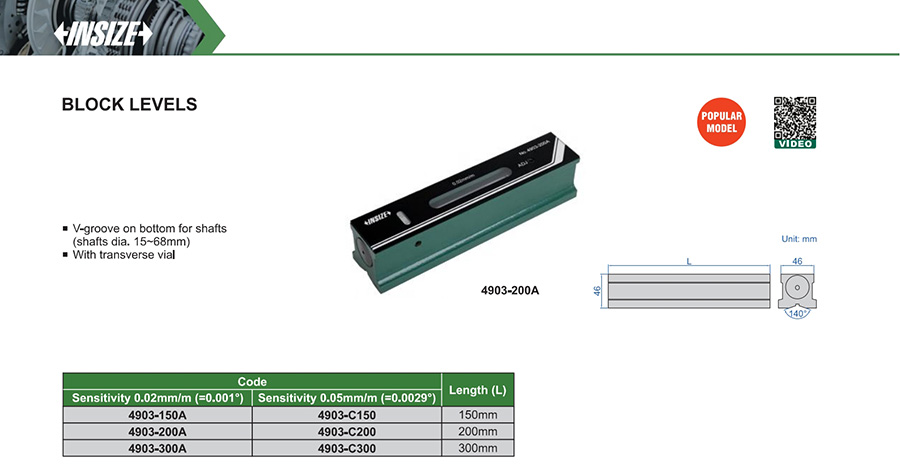 | 4903-200A | 200mm | 0.02mm/m (=0.001°) |