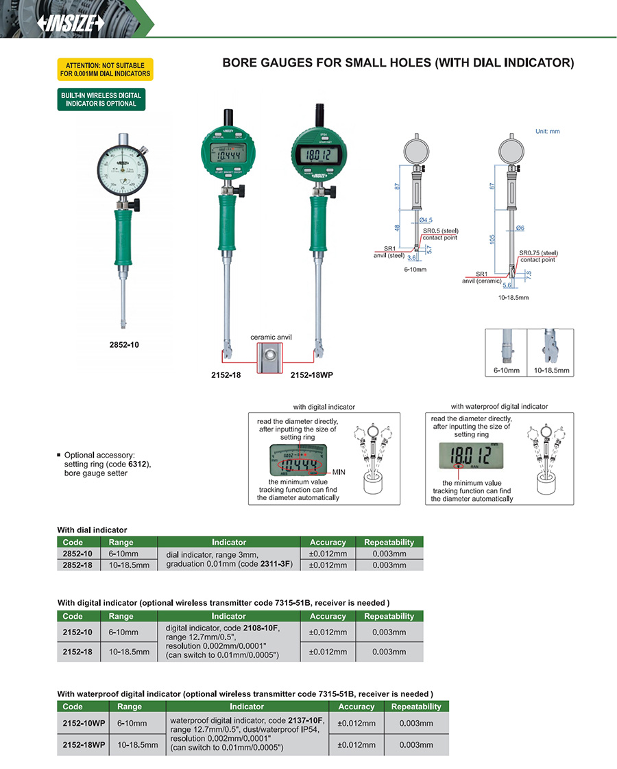 2152-10WP 6-10mm ±0.012mm 0.003mm