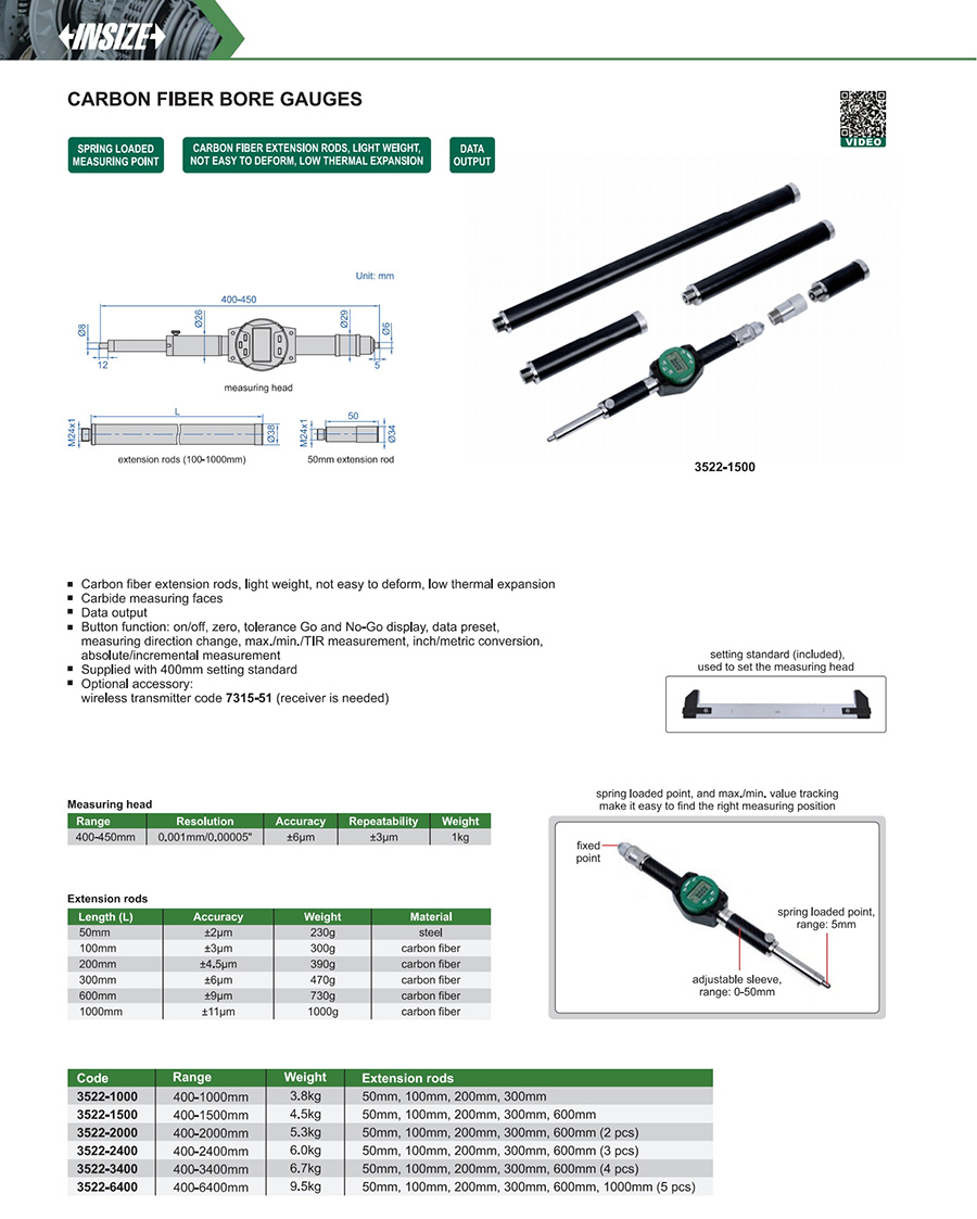 Button function: on/off, zero, tolerance Go and No-Go display, data preset, measuring direction change, max./min./TIR measurement, inch/metric conversion, absolute/incremental measurement