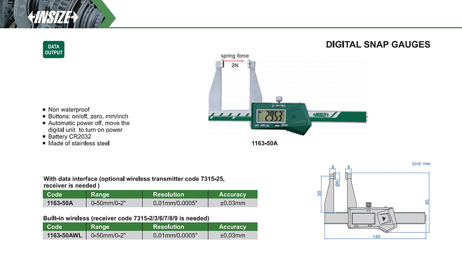 1163-50A 0-50mm/0-2" ±0.03mm 0.01mm/0.0005"