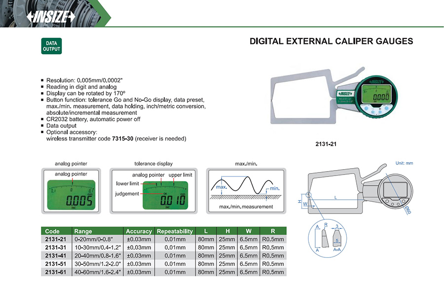 2131-41 20-40mm/0.8-1.6" ±0.03mm 0.005mm/0.0002"