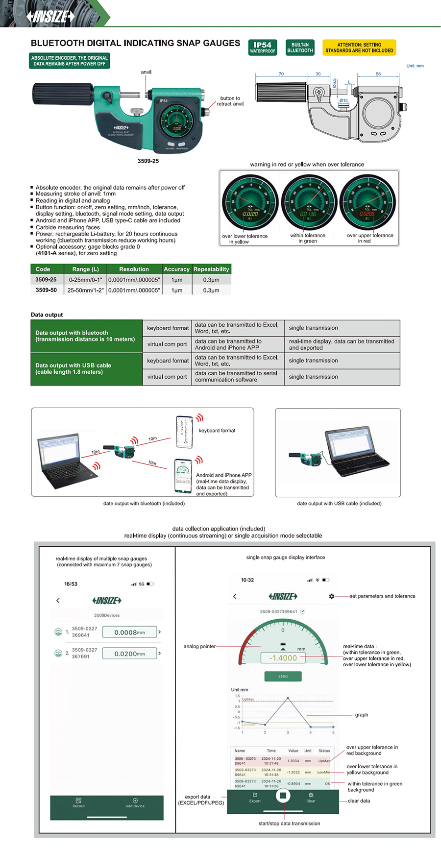 3509-50 25-50mm/1-2" 1µm 0.0001mm/0.000005"