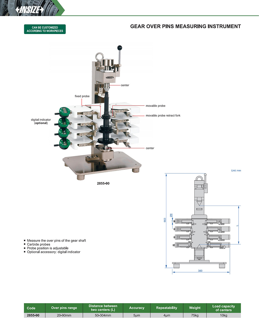 Measure the over pins of the gear shaft