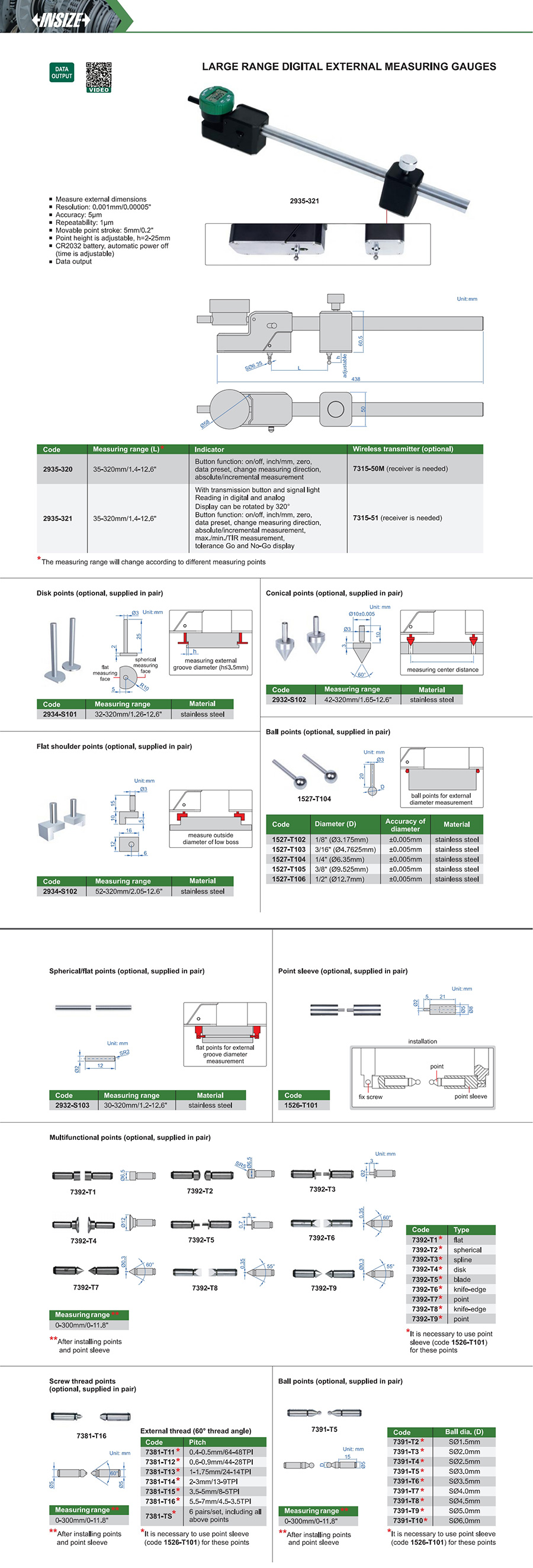2935-321 5µm 0.001mm/0.00005" 1µm 35-320mm/1.4-12.6"