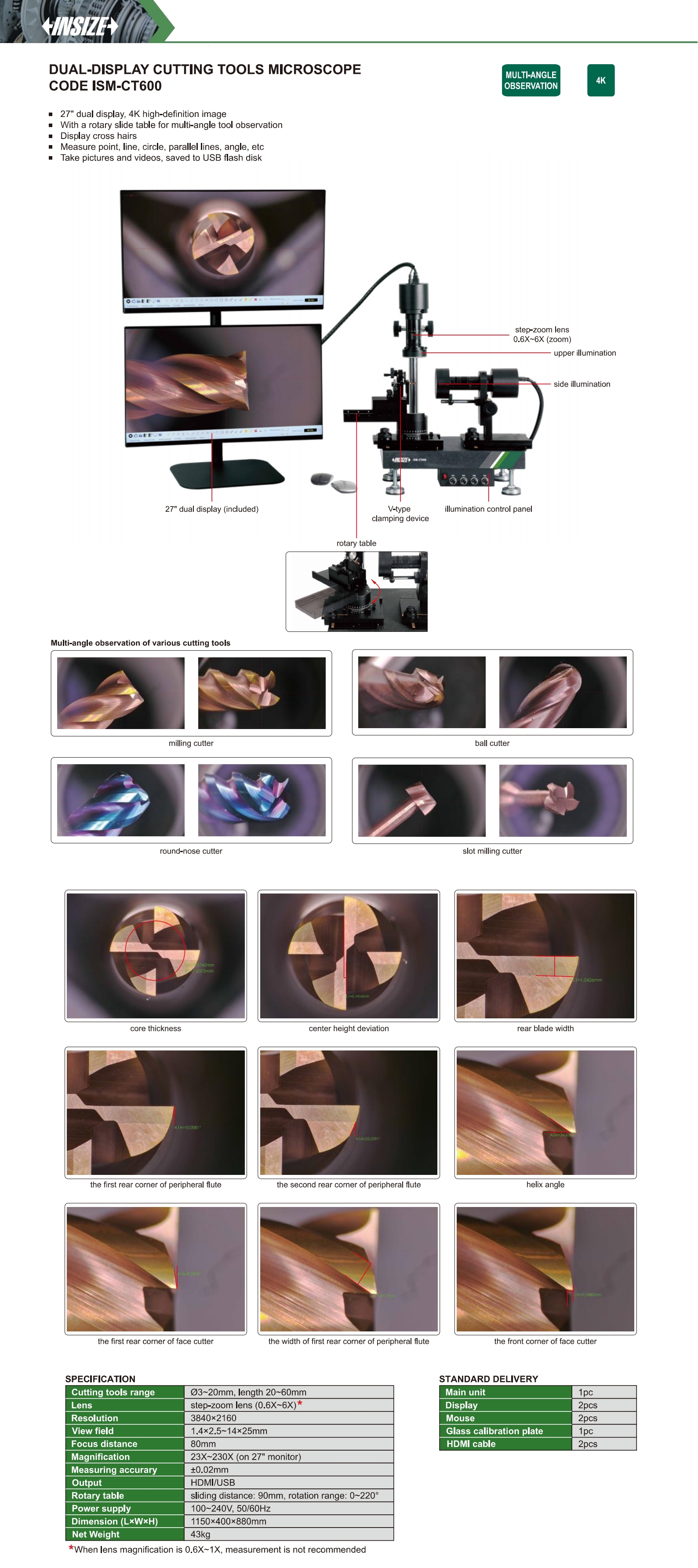 ISM-CT600 3840x2160 23X~230X 1.4x2.5~14x25mm Ø3~20mm, length 20~60mm