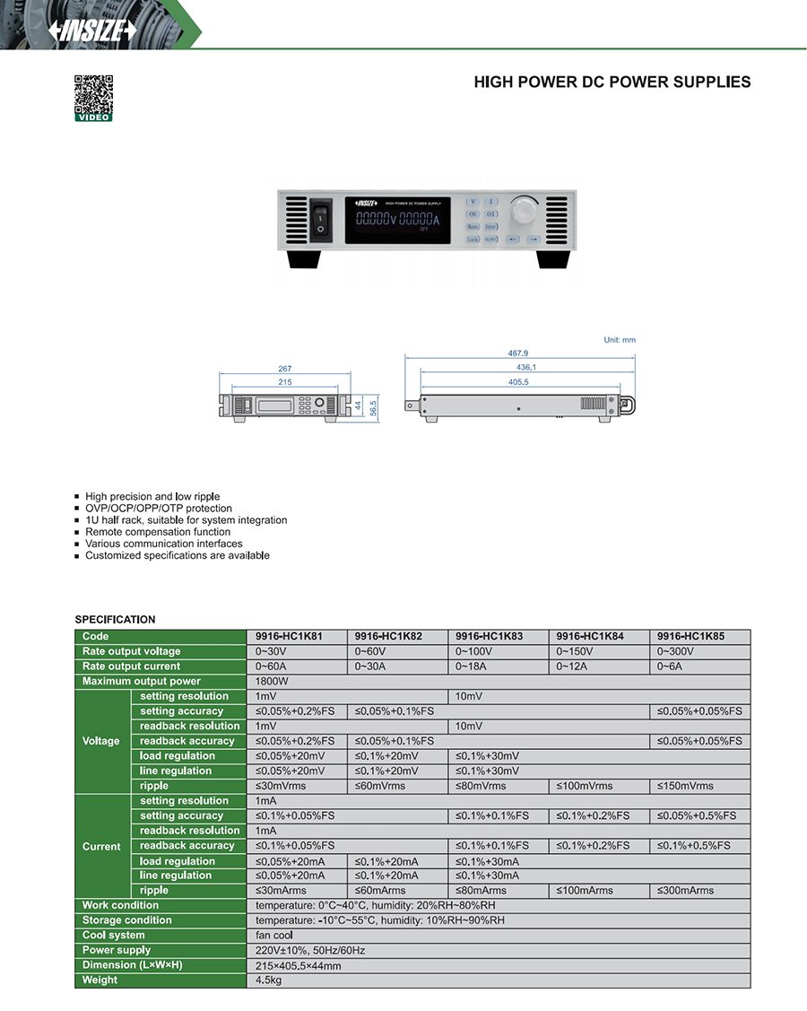 | 9916-HC1K81 | 0~30V | 0~60A | 1800W |