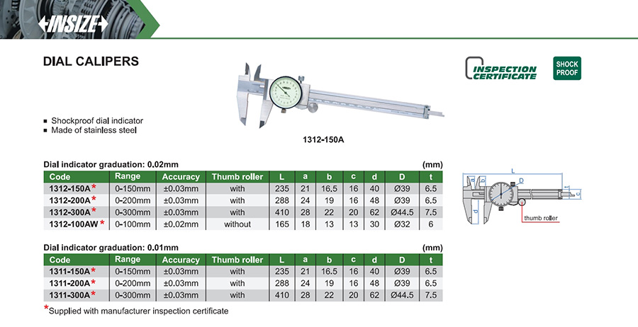1312-150A 0-150mm ±0.03mm 0.02mm