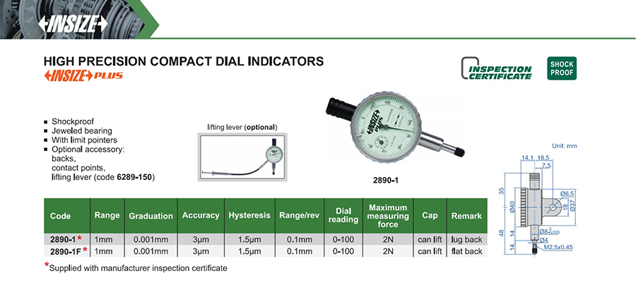 2890-1F 1mm 3µm 0.001mm