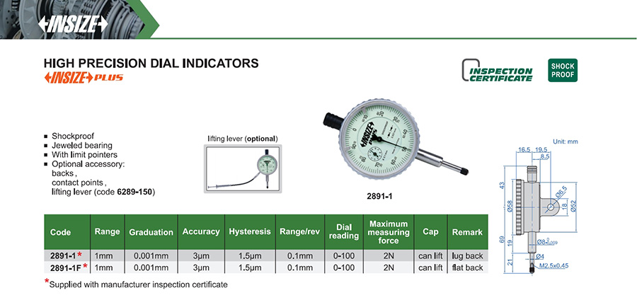 2891-1F 1mm 3µm 0.001mm