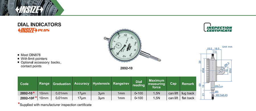 2892-10 10mm 17µm 0.01mm