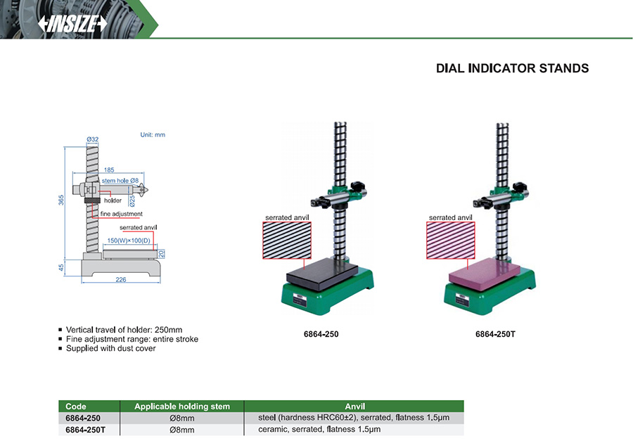 Vertical travel of holder: 250mm