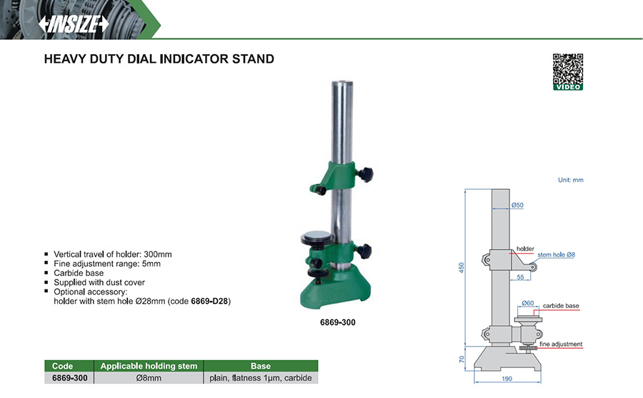 Vertical travel of holder: 300mm