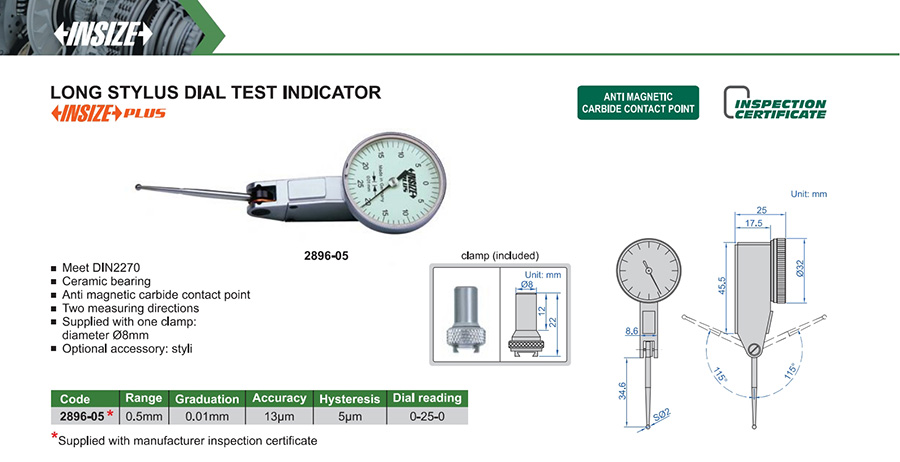 Home / Dimensional Metrology / Measuring Tools / Indicators And Dial Indicator Stands / Dial Test Indicators