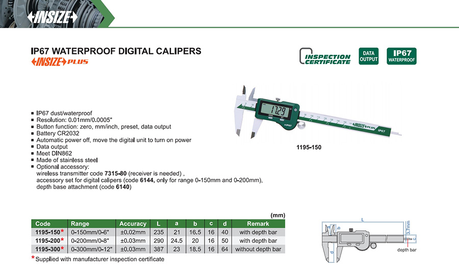 | 1195-150 | 0-150mm/0-6" | ±0.02mm | 0.01mm/0.0005" | with data interface |