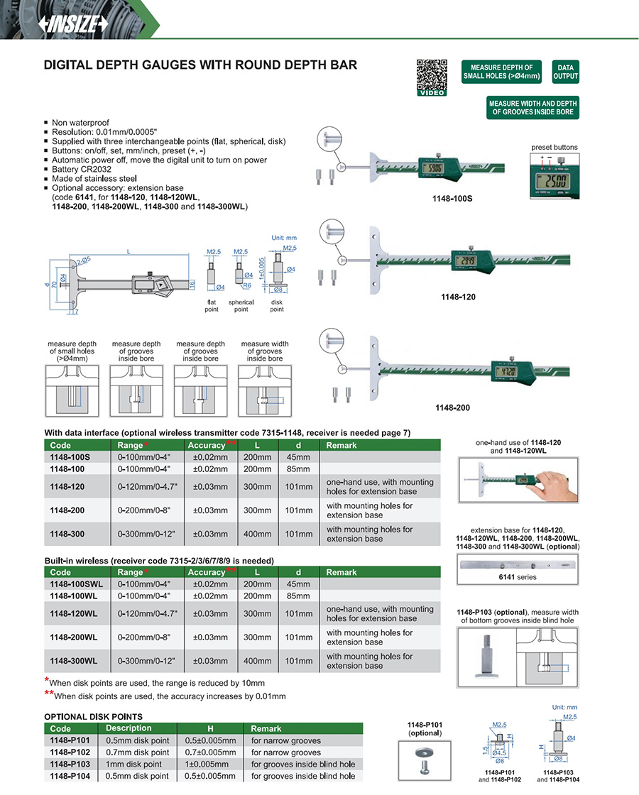 1148-120WL 0-120mm/0-4.7" ±0.03mm 0.01mm/0.0005" built-in wireless