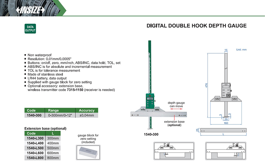 1540-300 0-300mm/0-12" ±0.04mm 0.01mm/0.0005" with data interface