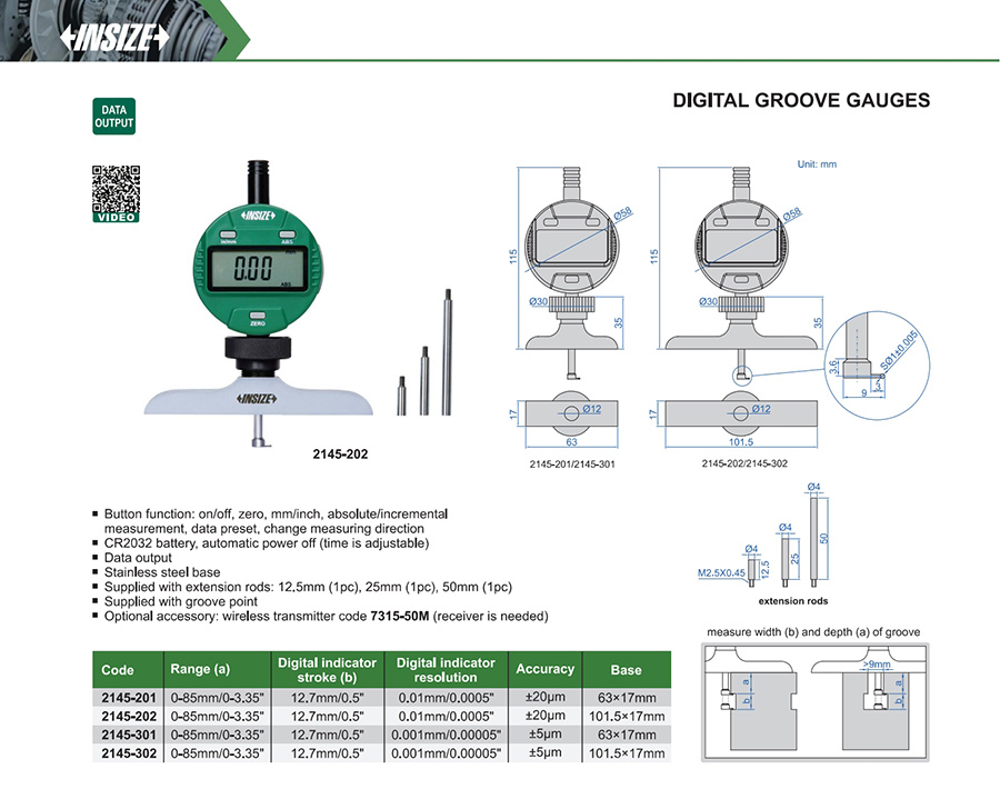 2145-202 0-85mm/0-3.35" ±20µm 0.01mm/0.0005" with data interface