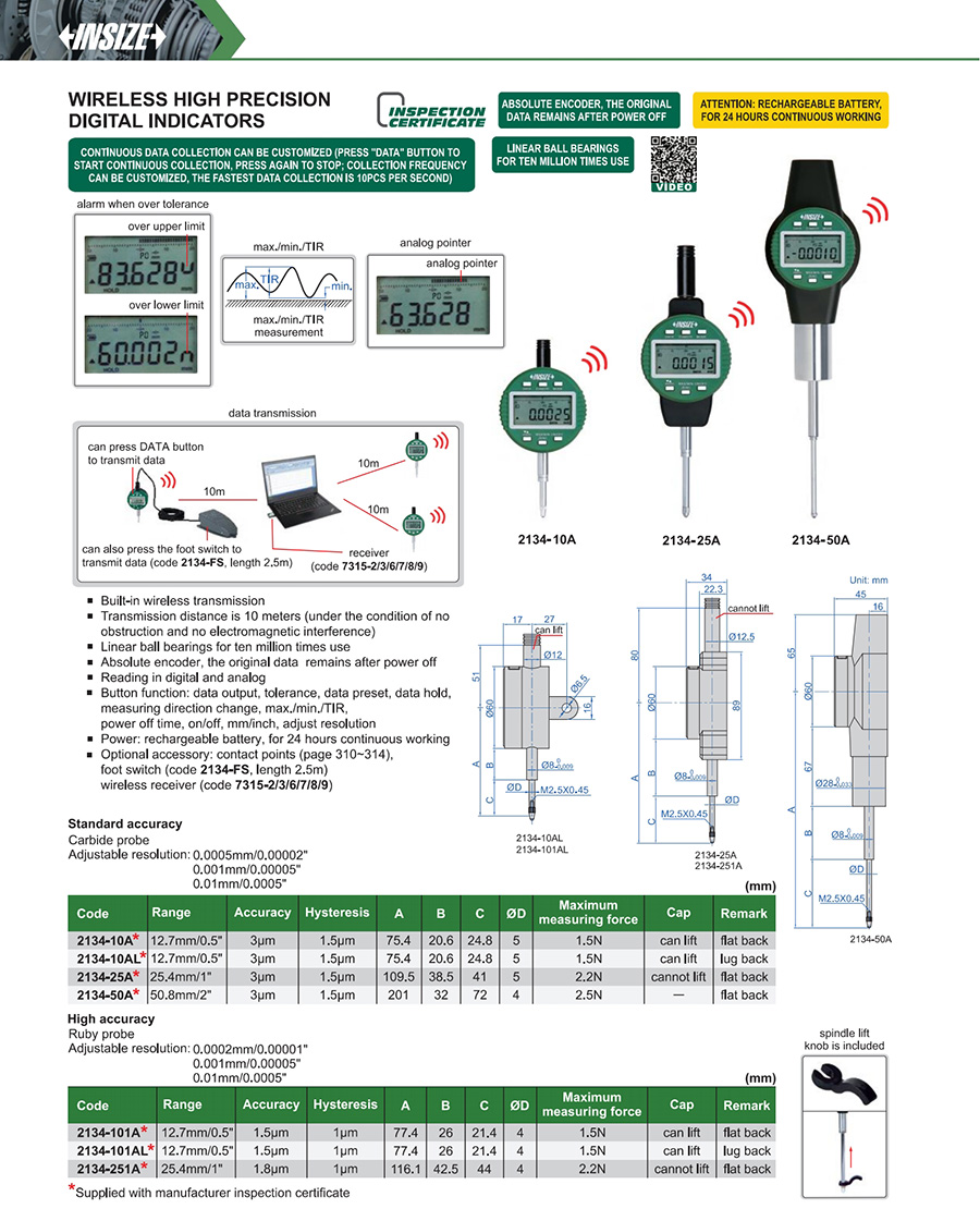 2134-101A 12.7mm/0.5" 1.5µm 0.0002mm/0.00001"