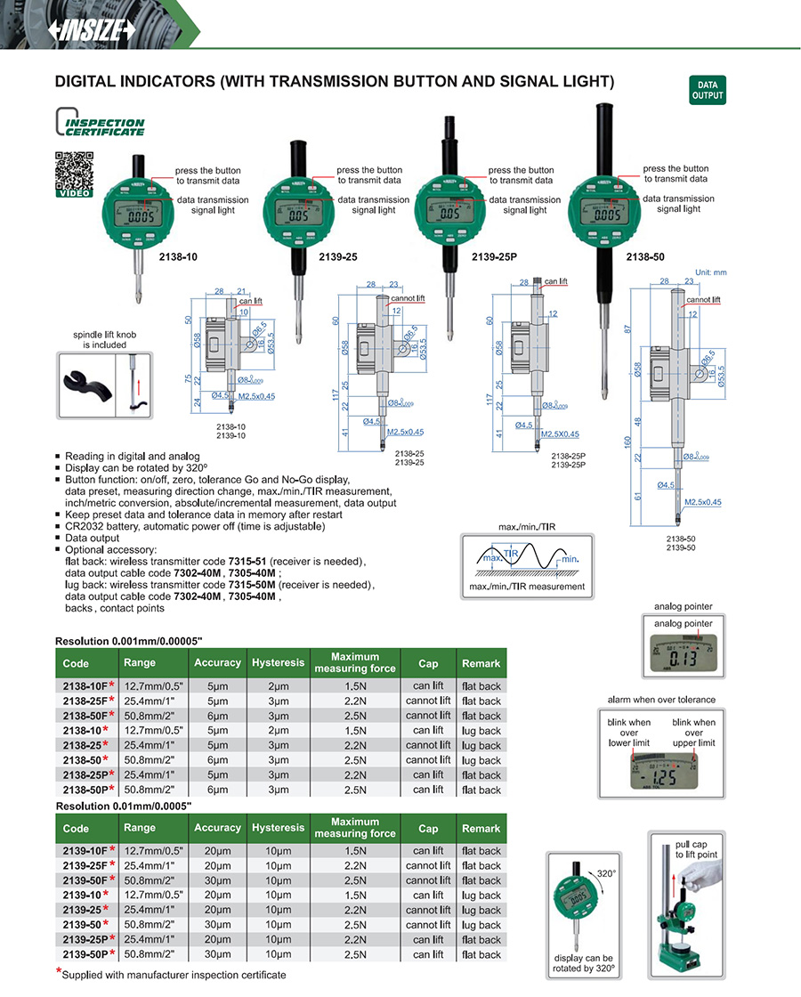 2138-25 25.4mm/1" 5µm 0.001mm/0.00005"