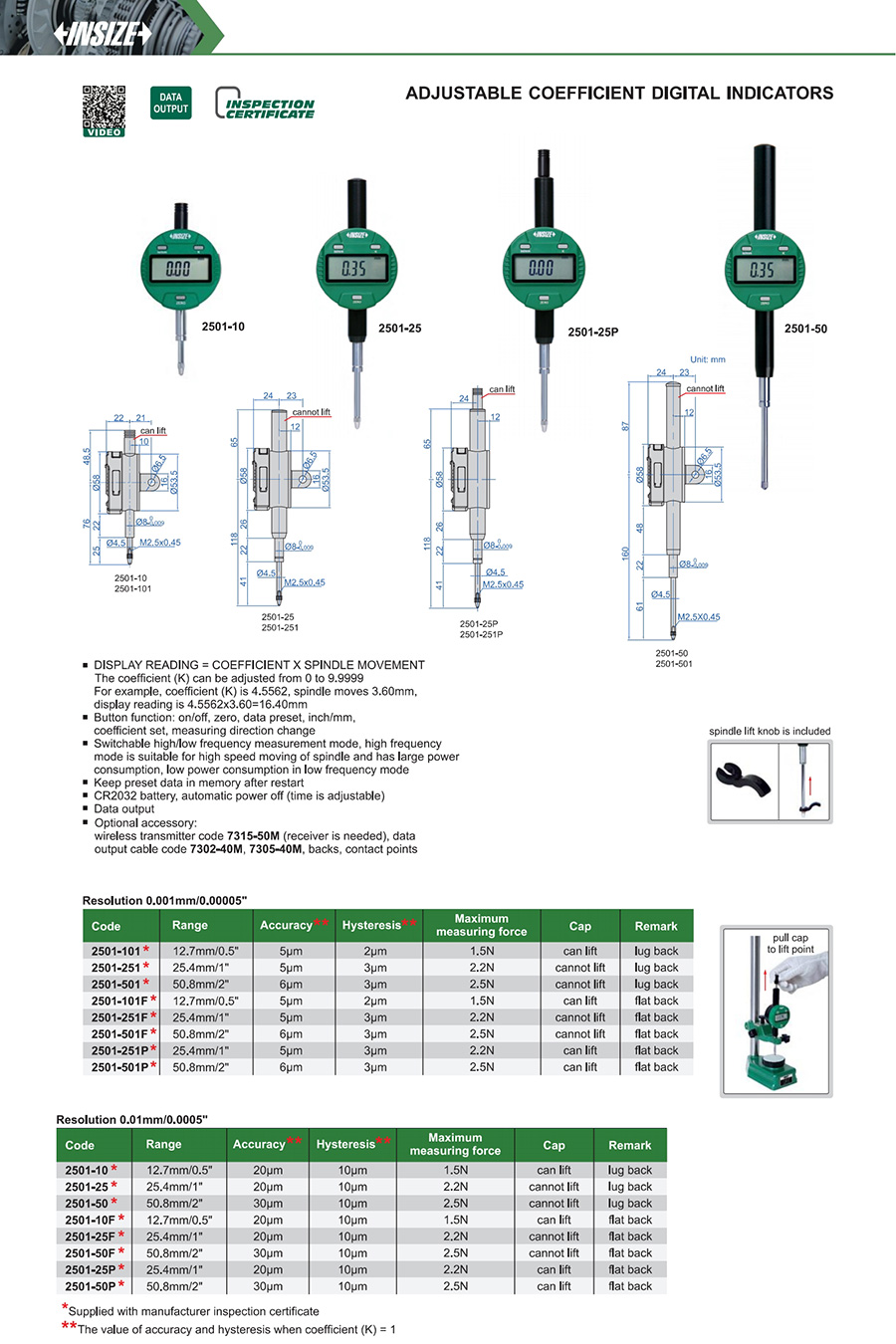 2501-101 12.7mm/0.5" 5µm 0.001mm/0.00005"