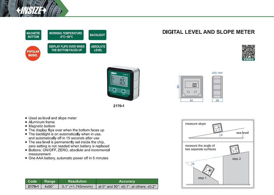 2170-1 4x90° at 0° and 90°: ±0.1°; at others: ±0.2° 0.1° (=1.745mm/m) no