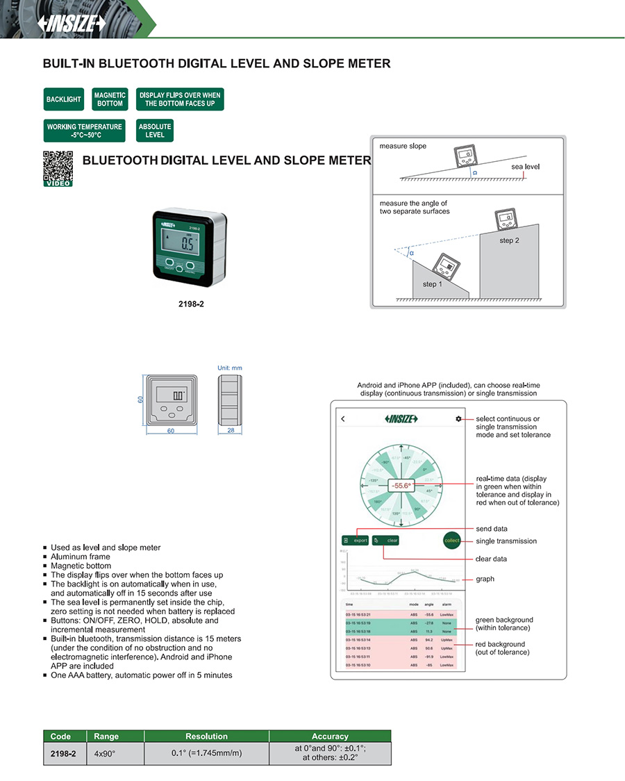 2198-2 4x90° at 0° and 90°: ±0.1°;at others: ±0.2° 0.1° (=1.745mm/m) yes