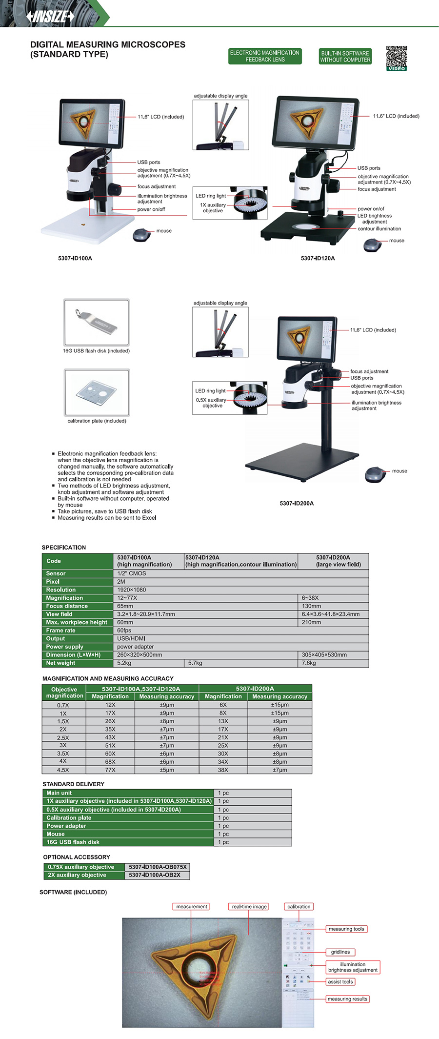 5307-ID200A digital measuring microscopes 6~38X 6.4×3.6~41.8×23.4mm 2M