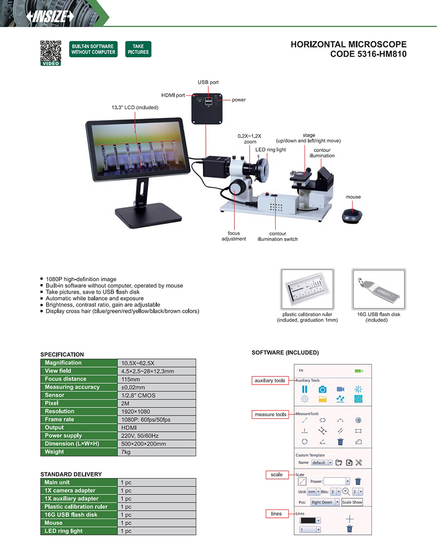 5316-HM810 digital measuring microscopes 10.5X~62.5X 4.5×2.5~28×12.3mm 2M