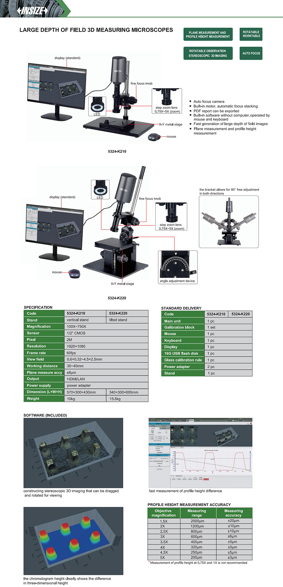 5324-K220 large depth of field 3D measuring microscopes 100~750X 0.6x0.32~4.5x2.5mm 2M