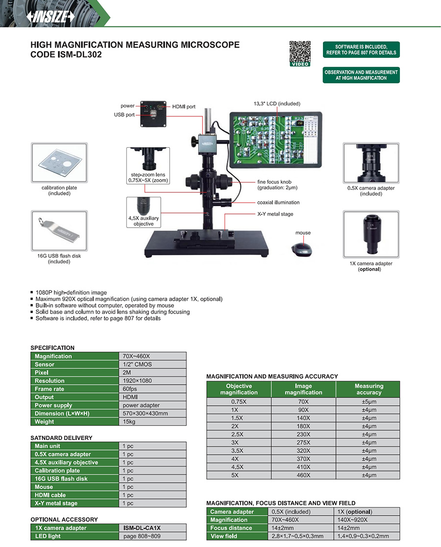 ISM-DL302 digital measuring microscopes 70X~460X 2.8×1.7~0.5×0.3mm 2M