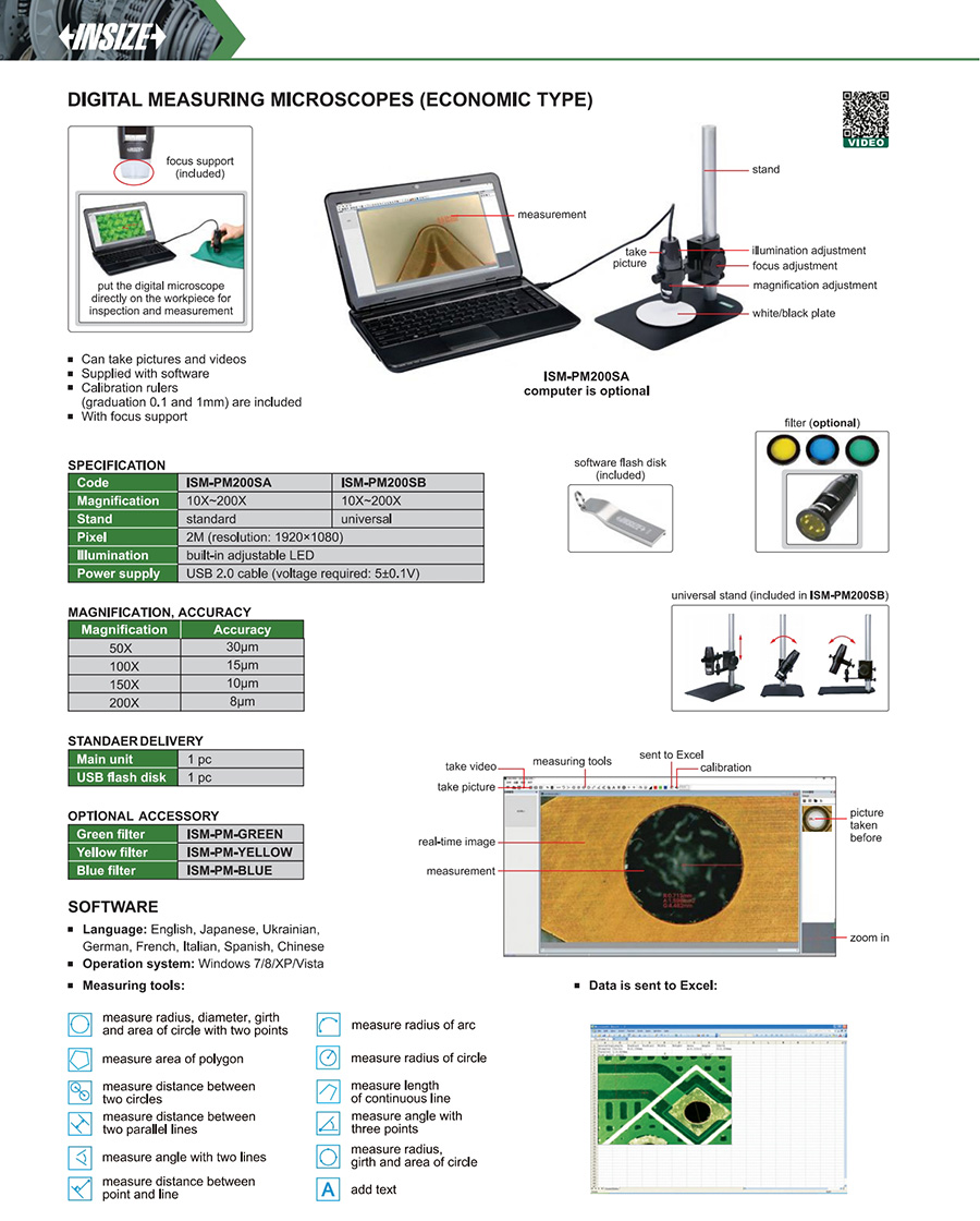 ISM-PM200SA portable digital microscopes 10X~200X 2M