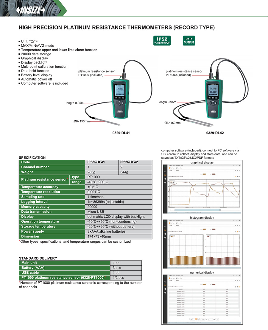 0329-DL42 PT1000 platinum resistor ±0.5°C 2 yes -40°C~200°C