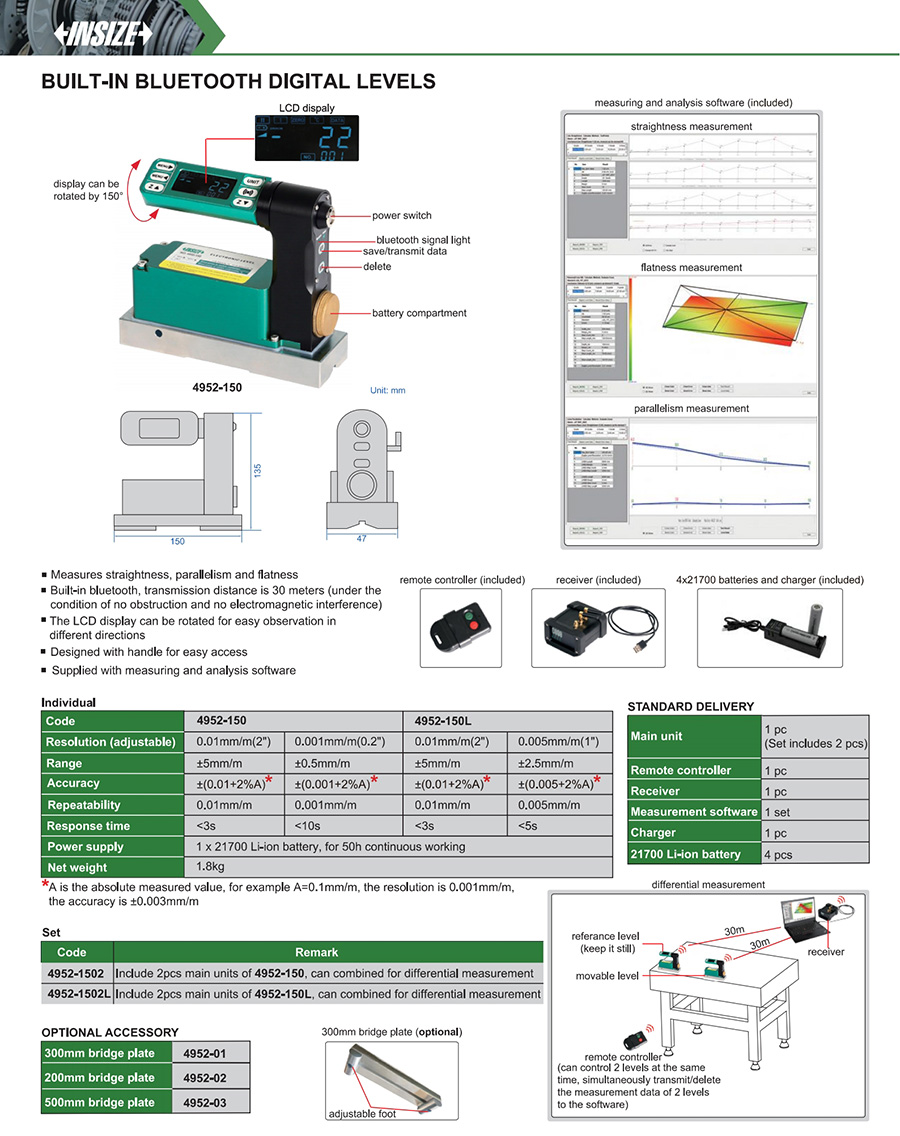 4952-150L ±2.5mm/m ±(0.005+2%A) 0.005mm/m (1") 0.005mm/m