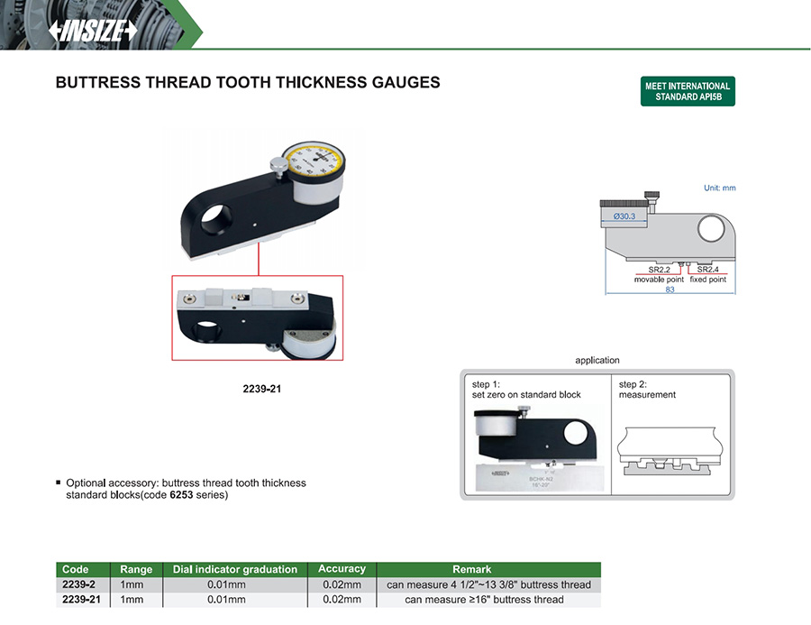 2239-21 1mm 0.02mm 0.01mm buttress tooth width
