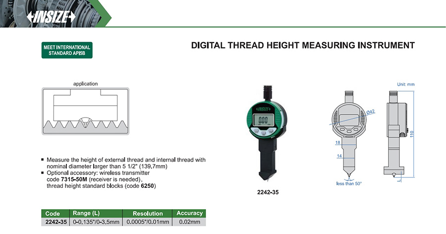 2242-35 0-0.135"/0-3.5mm 0.02mm 0.0005"/0.01mm thread height