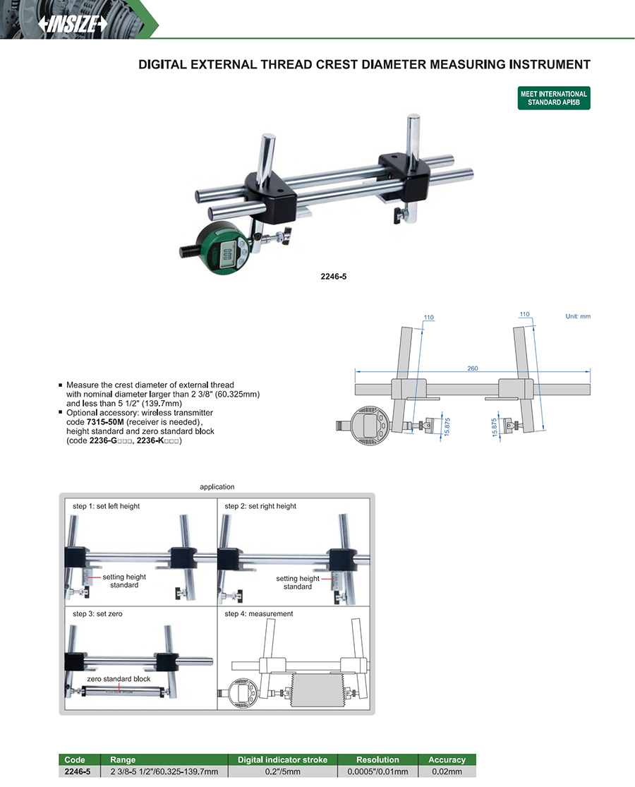 2246-5 2 3/8-5 1/2"/60.325-139.7mm 0.02mm 0.0005"/0.01mm crest diameter