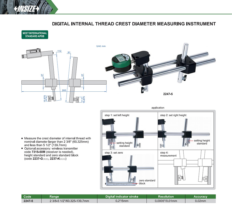 2247-5 2 3/8-5 1/2"/60.325-139.7mm 0.02mm 0.0005"/0.01mm crest diameter