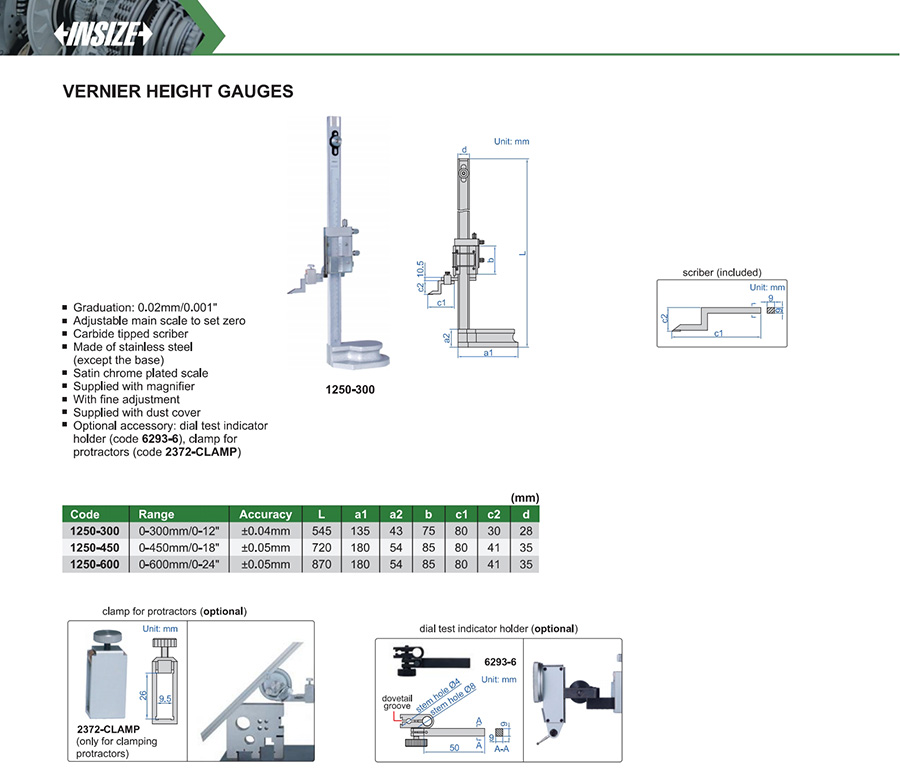 1250-300 0-300mm/0-12" ±0.04mm 0.02mm/0.001"