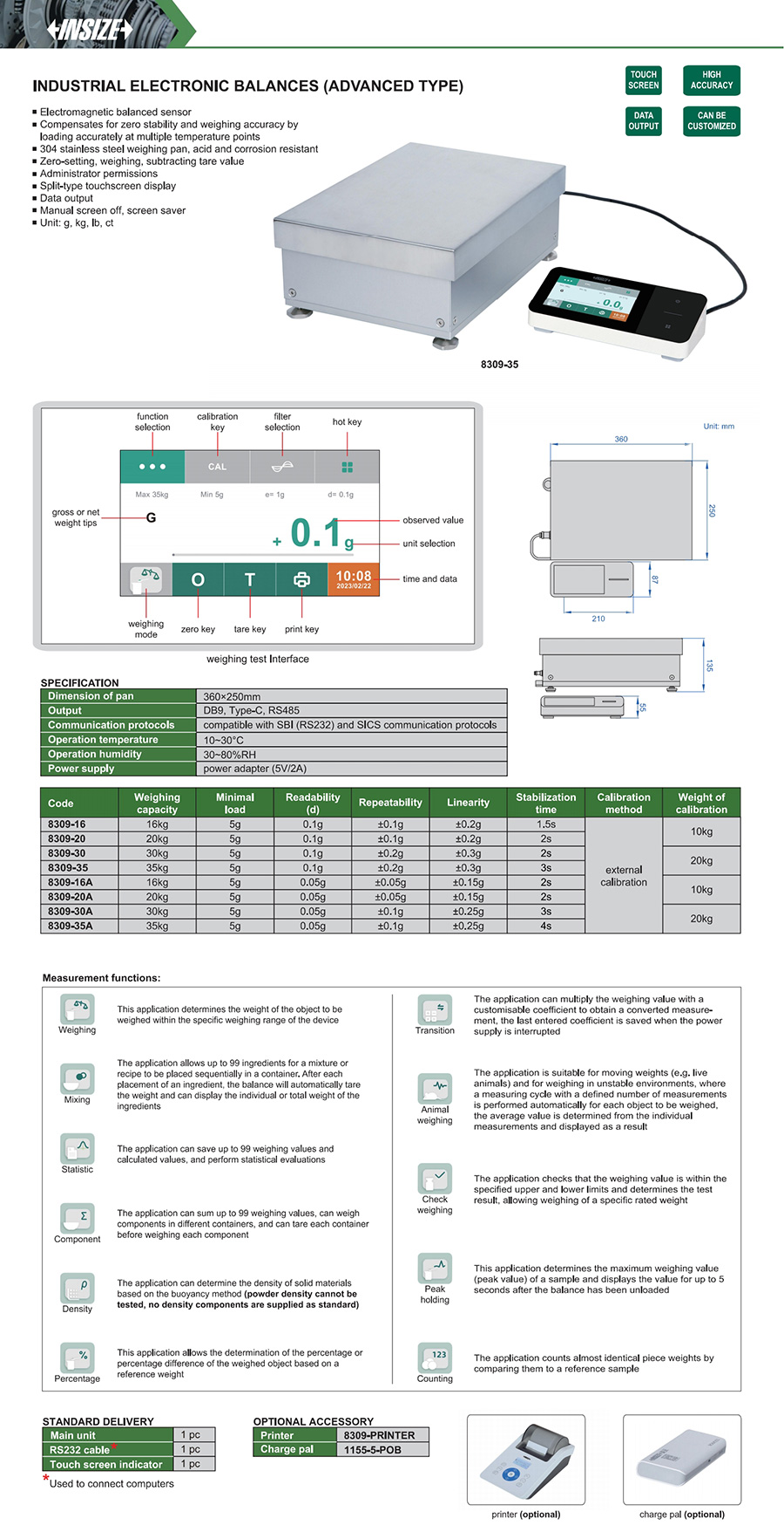 8309-20A 20000g 0.05g 360×250mm