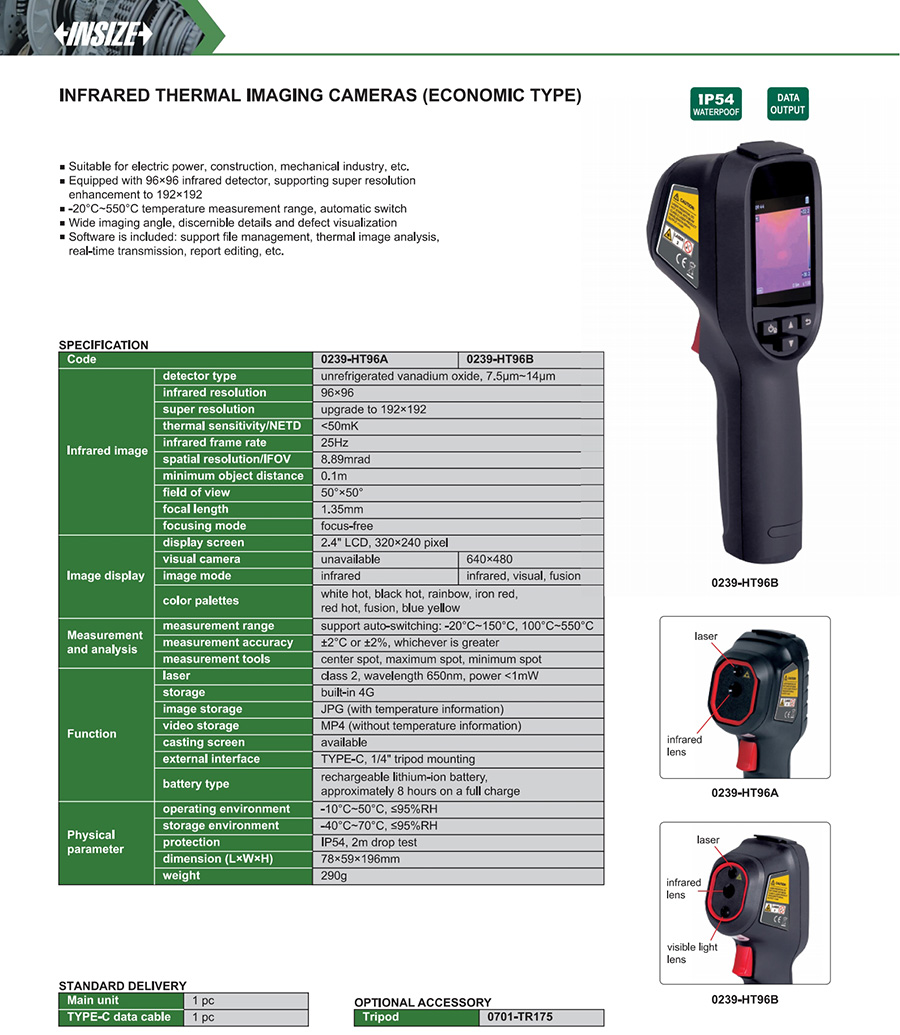 0239-HT96A -20°C~150°C, 100°C~550°C 96x96 focus-free yes