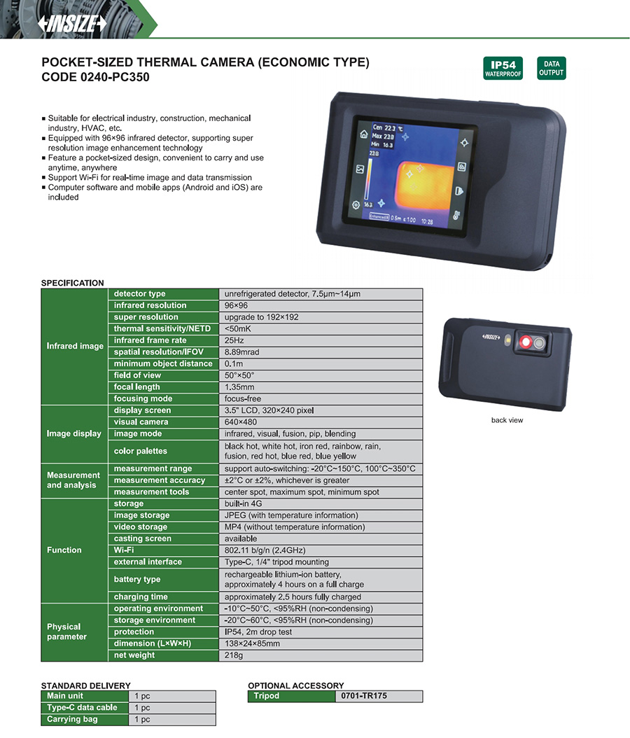 0240-PC350 support auto-switching: -20°C~150°C, 100°C~350°C 96×96 focus-free upgrade to 192×192