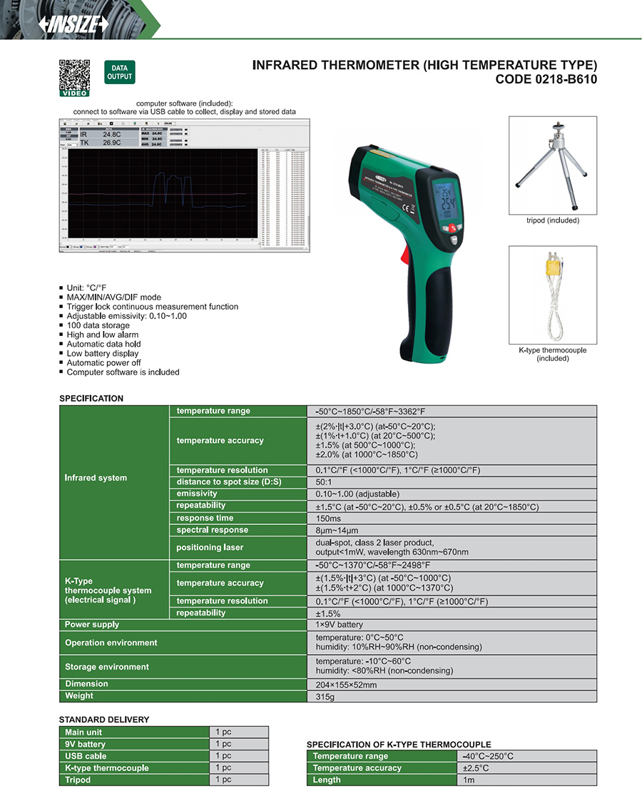 0218-B610 -50°C~1850°C/-58°F~3362°F 50:1 yes