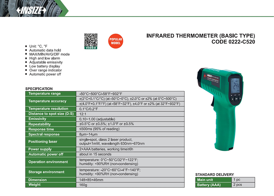 0222-C520 -50°C~500°C/-58°F~932°F 12:1 no