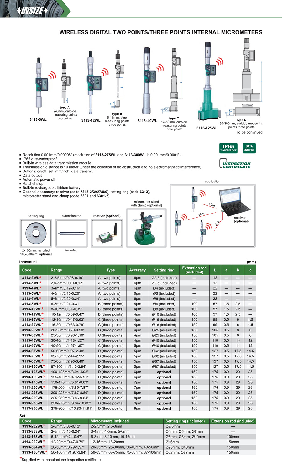 3113-10WL 8-10mm/0.31-0.39" 4μm 0.001mm/0.00005"
